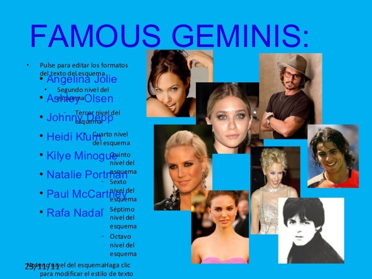 Famous Geminis : Geminis are symbolized by celestial twins and are often happy socializing and sharing with loved ones.