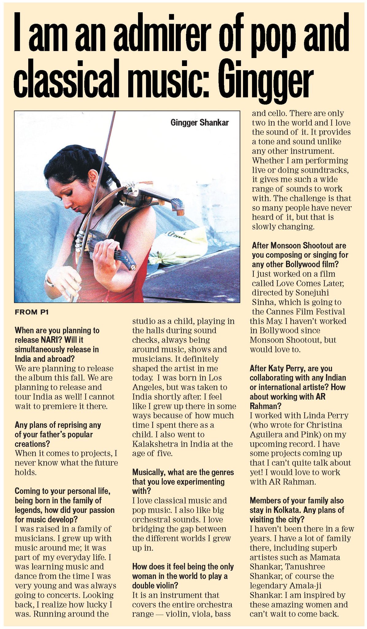 Gingger Shankar Double Violin / She was a guest artist on katy perry's last album, has toured with the smashing pumpkins.