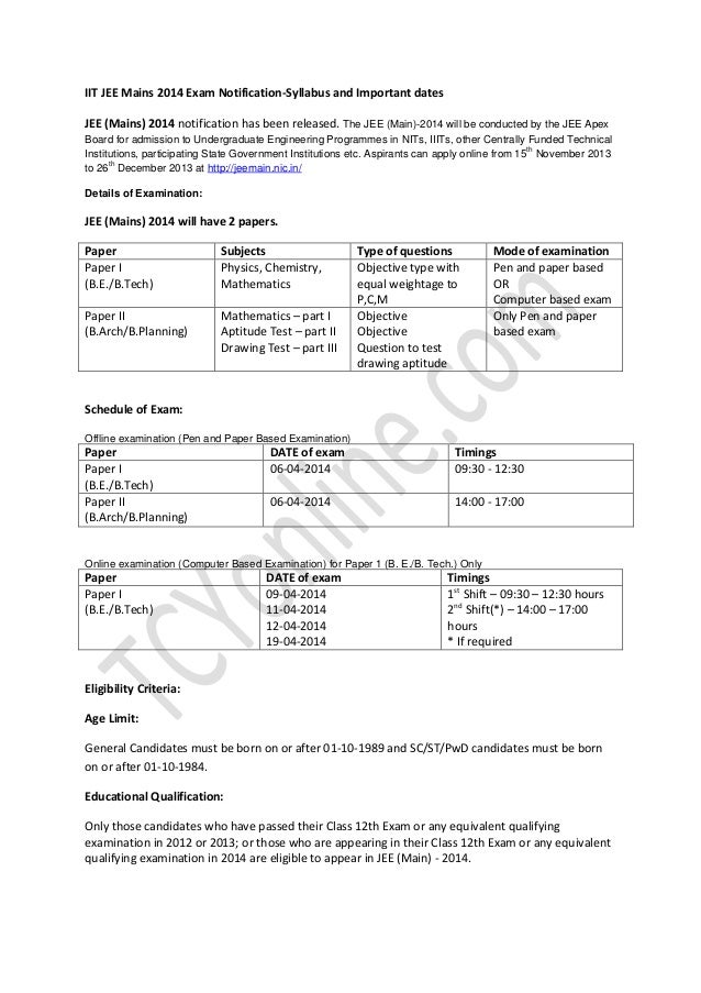 Jee Examination 2014 / Jee main 2014 question paper and solution download.