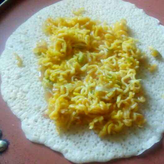 Maggi Dosa : Cook maggi on the other side with little chat masala and spice.