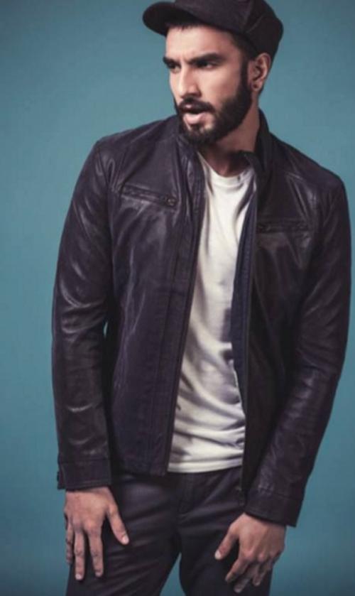 Ranveer Singh Leather Jacket : He sported a cap and he was all smiles for the lenses.